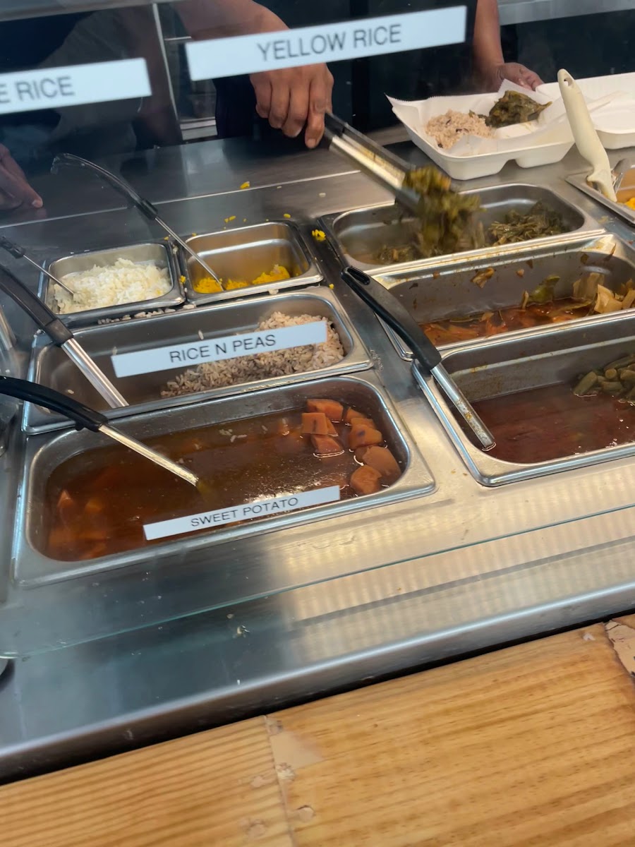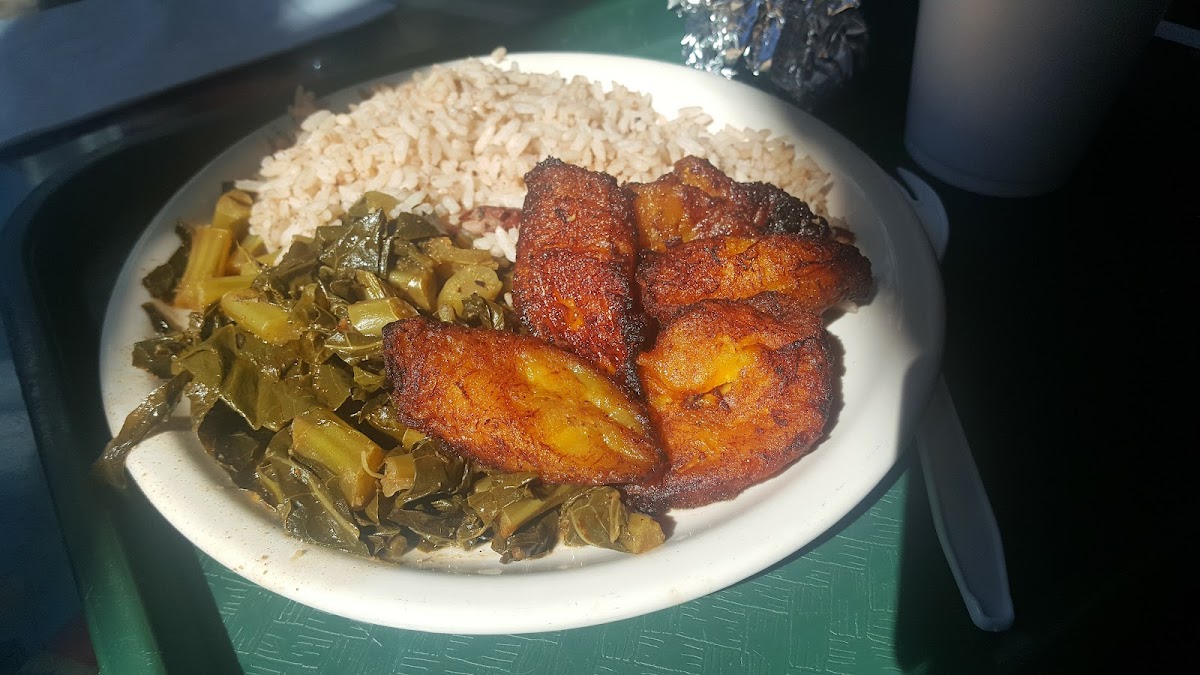 So many delicious options!!! We tried the spinach and cheese patties, which were perfectly filled and seasoned with a delicious light and flaky crust, and the spicy jerk tofu with collard greens and plantains. The spice level way perfect and the peppery, rich gravy was so delicious with perfect tofu patties, peppers and onions. All the veggies were meat free and it was so hard to pick just two, but the greens were delicious and the plantains provided a nice sweet treat to end our meal.